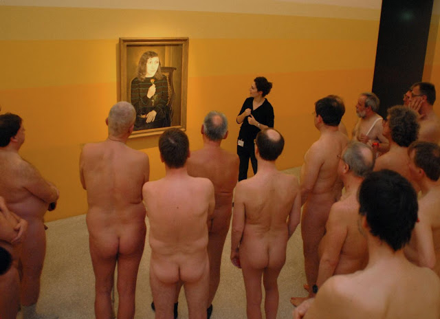 The photographer Laura and the galerist Miranda with naked visitors ...